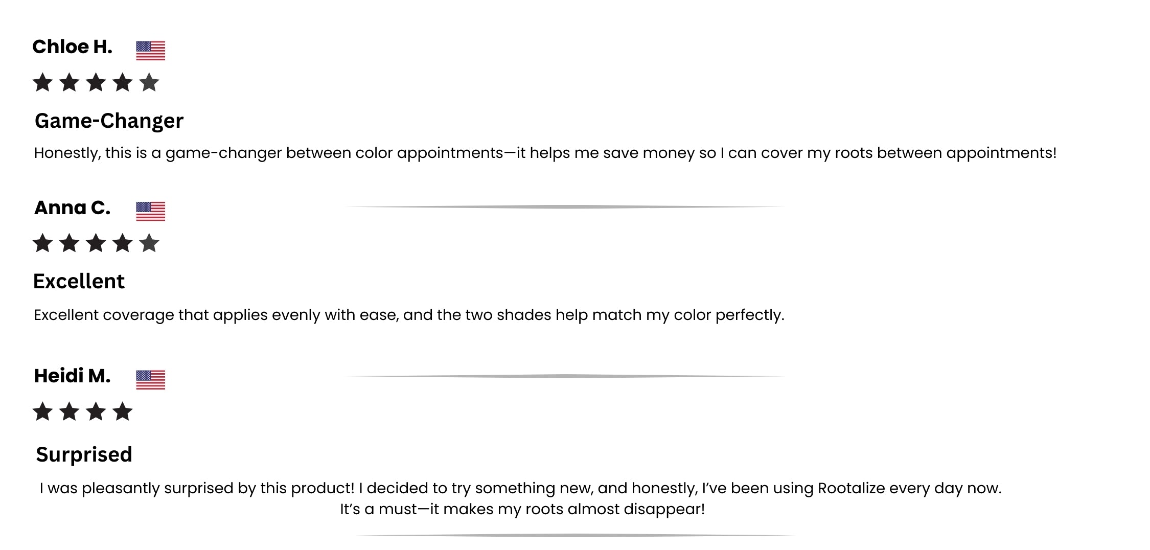 - Instant Coverage: The most precise, quick, and effective way to conceal your roots.