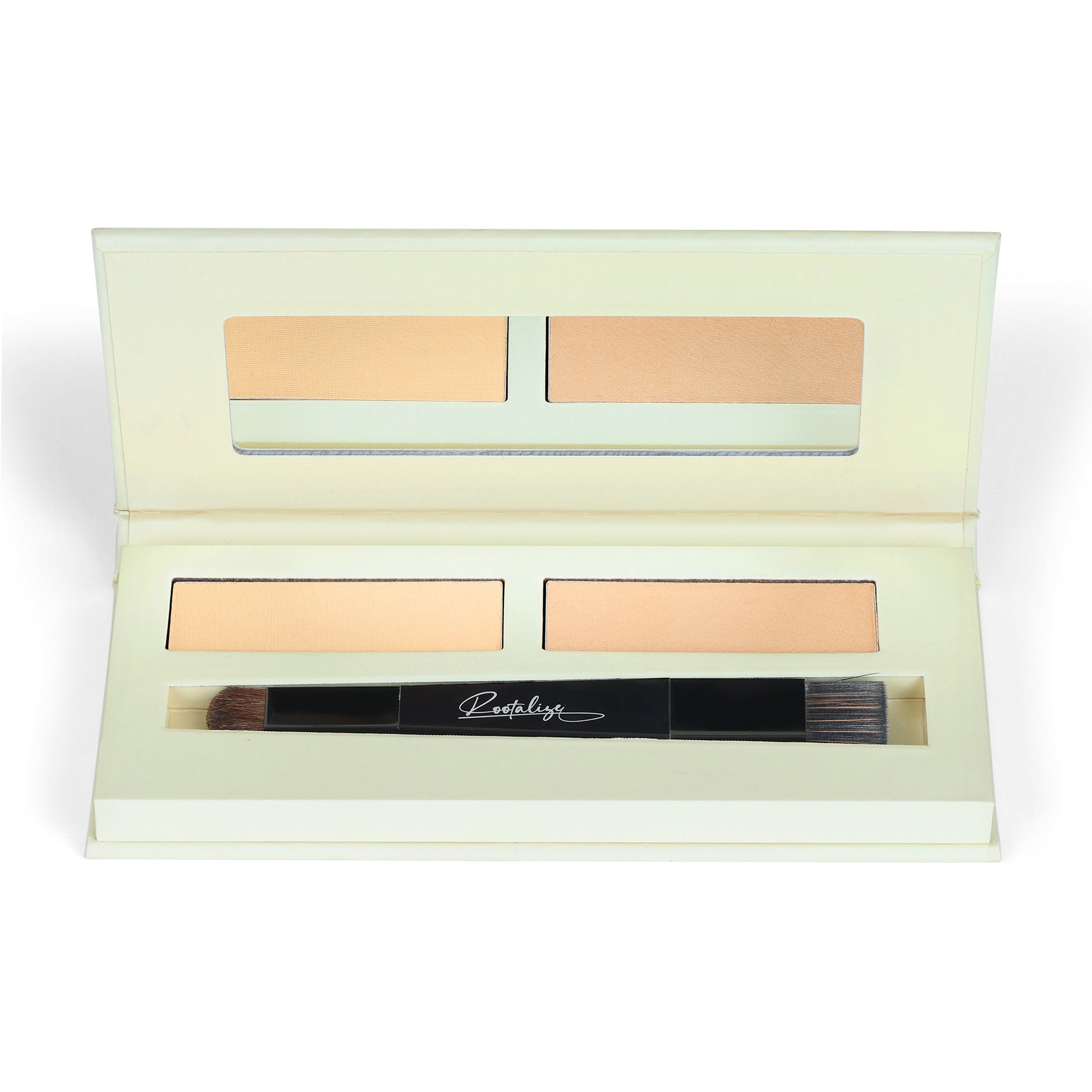 - Using the 2-headed brush, apply the darker powder directly to your roots, pressing firmly from the scalp outward. Avoid wide, sweeping motions.